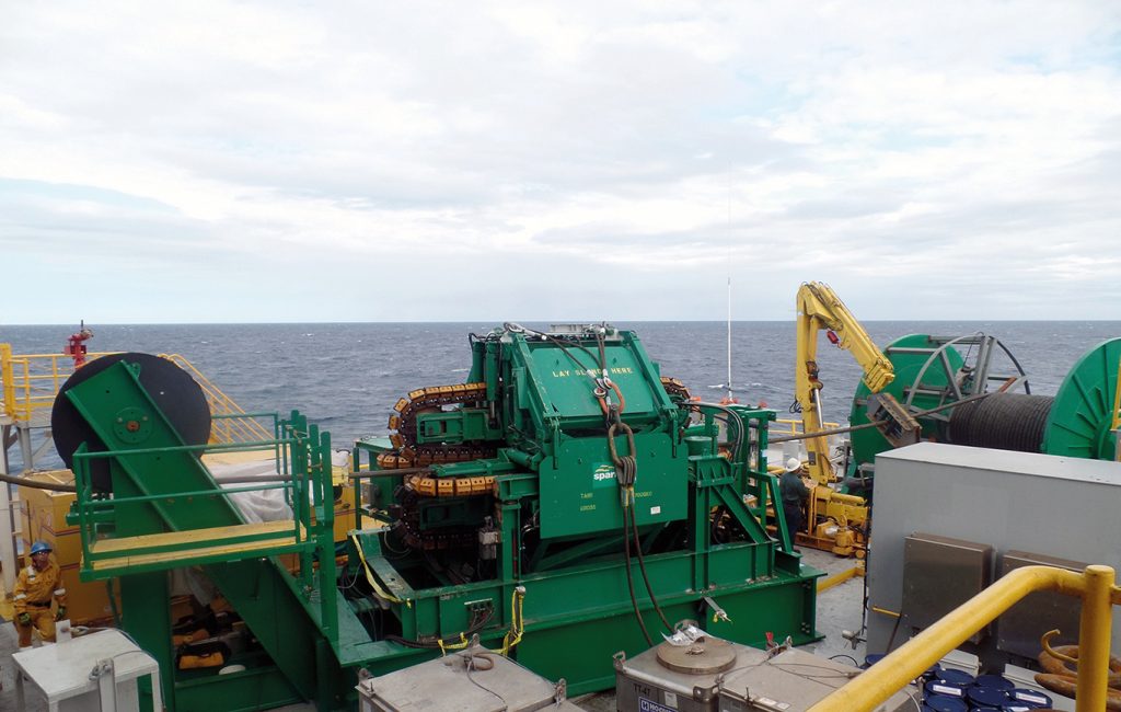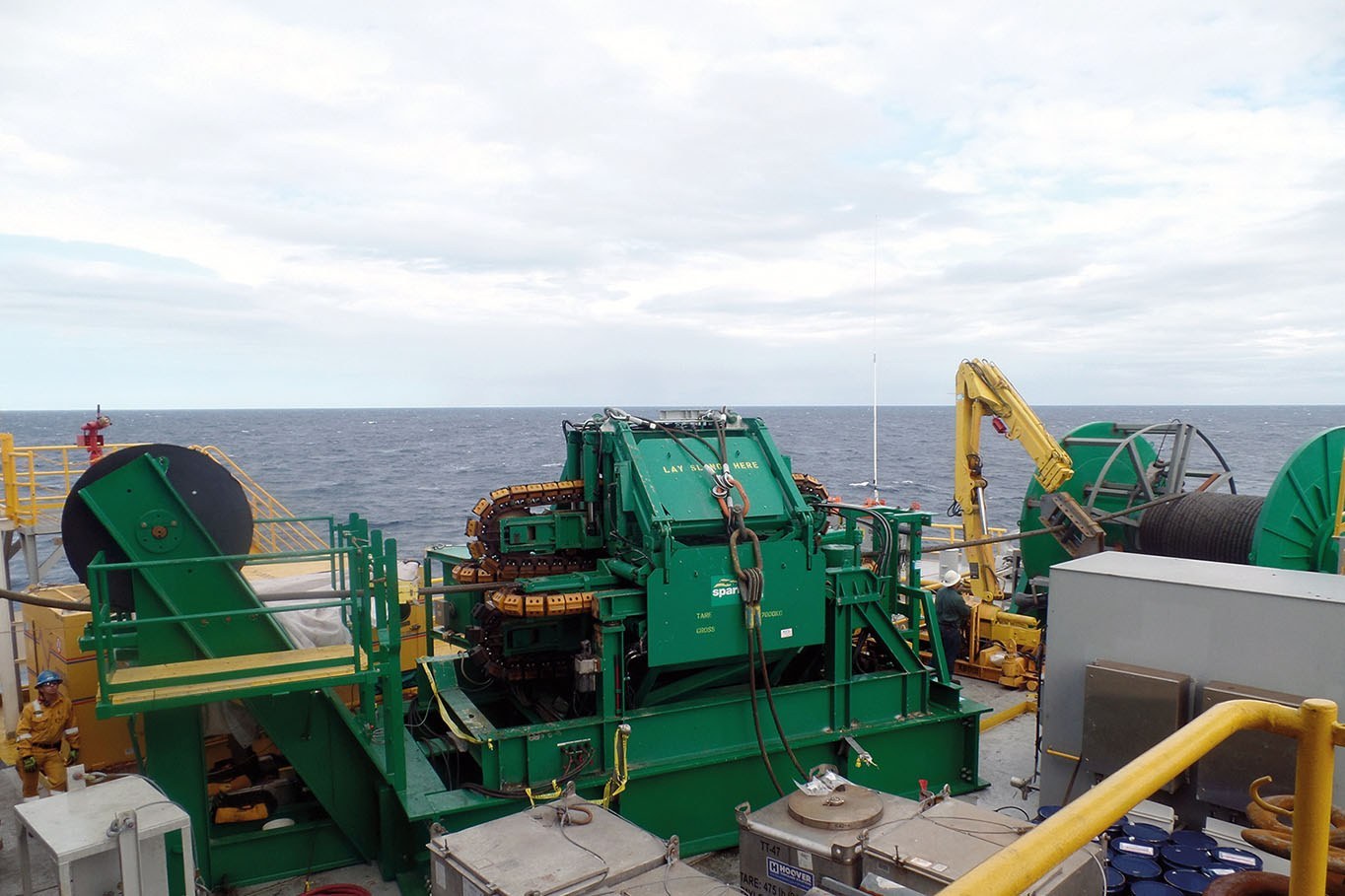 - We developed a system that used our 4-track 36 Te tensioner, a sub-frame with lead sheave assembly, a large reel system and a LMA 300 E-mag machine